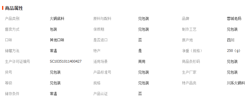 火锅调味料 其他调味品 复合调味料
