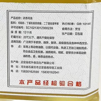 鸡油食用家用米线麻辣烫底料炒菜烧烤火锅调味鸡脂油500g浓香桶装