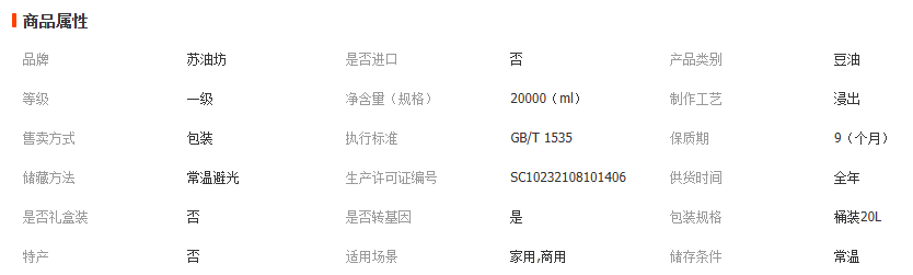 苏油坊苏北粮仓一级大豆油桶装20L餐饮装大豆精华食品级油脂非转