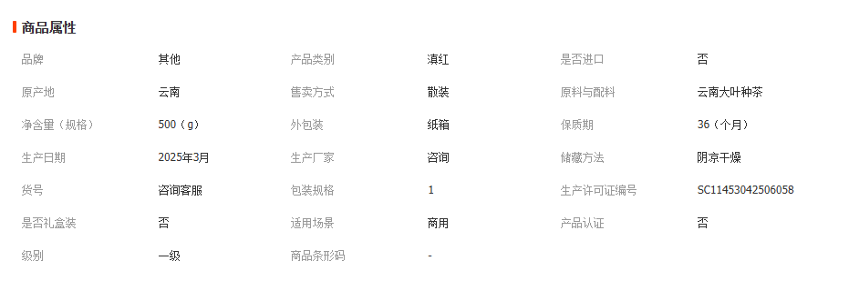 批发云南滇红茶叶 滇红三级 2025年早春红茶 散茶 500克