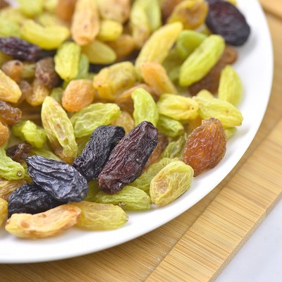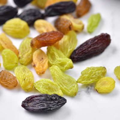温州好乐好食品有限公司发布的三色免彩色洗葡萄干罐装500g新疆特产黑加仑红绿混合葡萄干水果干图集库