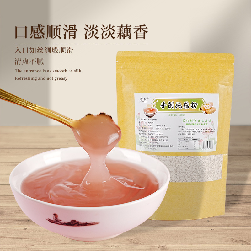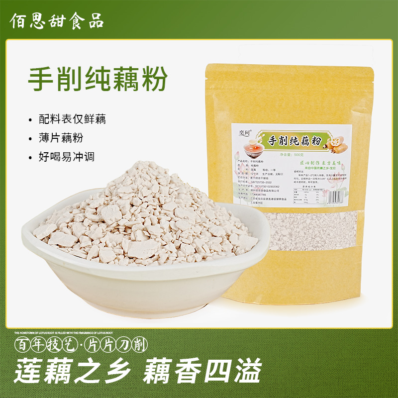 扬州佰思甜食品有限公司发布的原味藕粉袋装瓶装莲藕粉羹速食早餐产代餐手剥纯500g即食罐装图集库