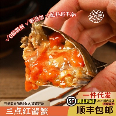 东港市瑞宇食品有限公司发布的三点红酱母蟹整只300g丹东生腌梭子蟹咸蟹生腌螃蟹海鲜醉蟹即食图集库