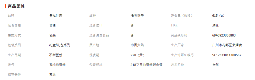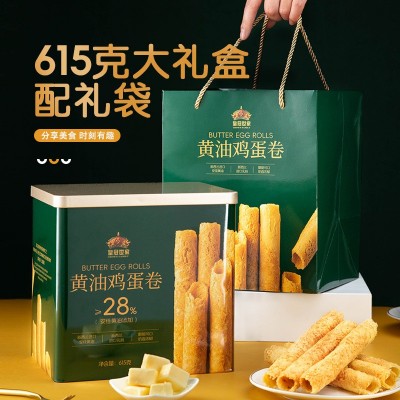 广州市芝顿食品有限公司发布的皇冠世家黄油鸡蛋卷新年春节年货送礼盒装办公室解馋休闲零食小吃图集库