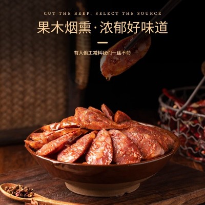 四川牦牛沟食品有限公司发布的四川特产麻辣香肠古法熏制五香麻辣香肠正宗川味农家腊肠餐饮批发图集库