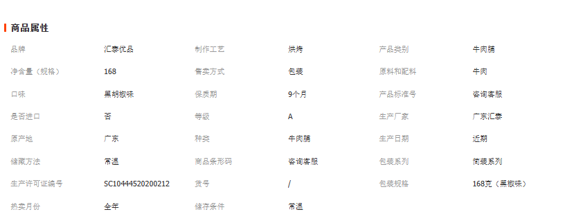 广东汇泰食品有限公司发布的黑椒牛肉脯小零食果木炭烤牛肉干熟食休闲牛肉片168克潮汕特产图集库