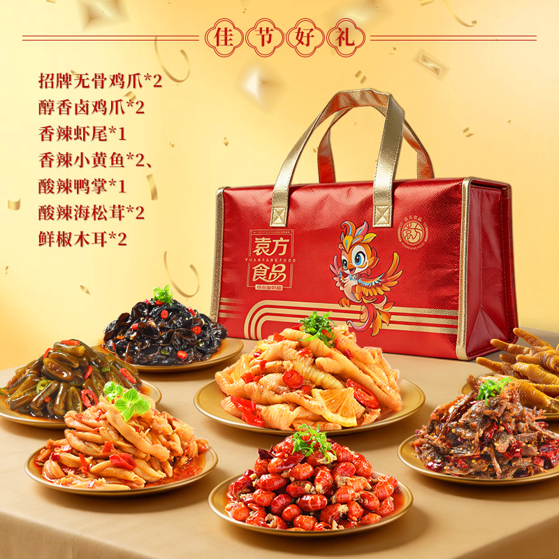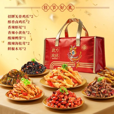 温州袁方食品有限公司发布的袁方年货礼盒酸辣无骨鸡爪过年团购送大礼凤爪卤味零食礼包非坚果图集库